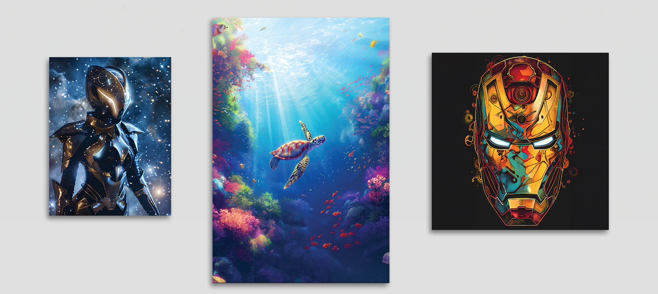 Turn your ideas into high-quality aluminum prints that captivate and inspire. Perfect for homes, offices, and personal projects, our vibrant, frameless prints bring your designs to life with unmatched durability and brilliance.